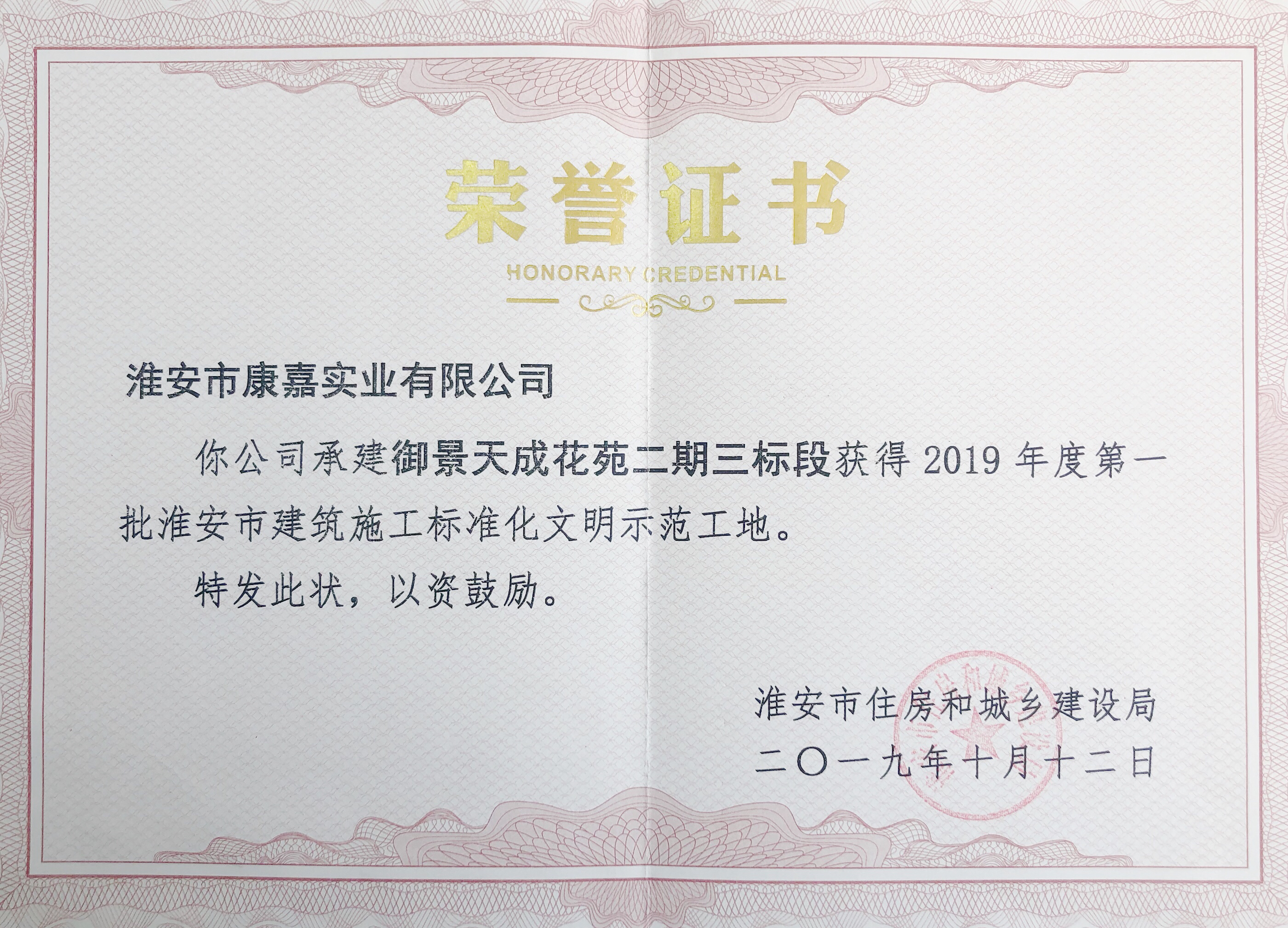 康嘉實(shí)業(yè) >> 首頁(yè) >> 公司概況 >> 市級(jí)標(biāo)化文明示范工地榮譽(yù)